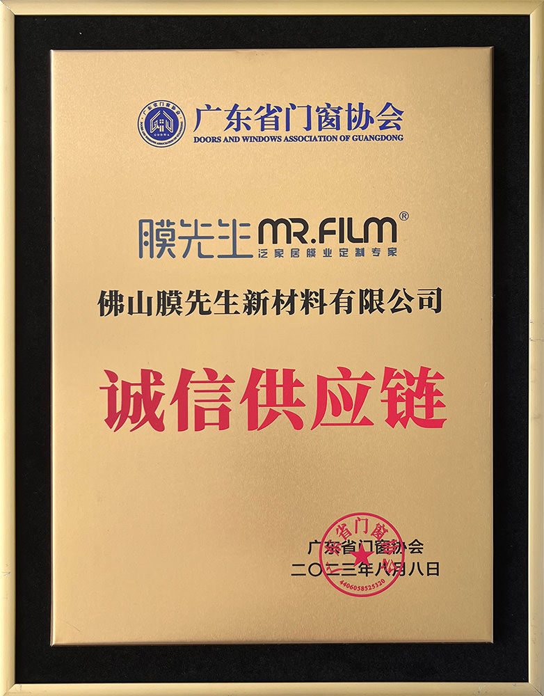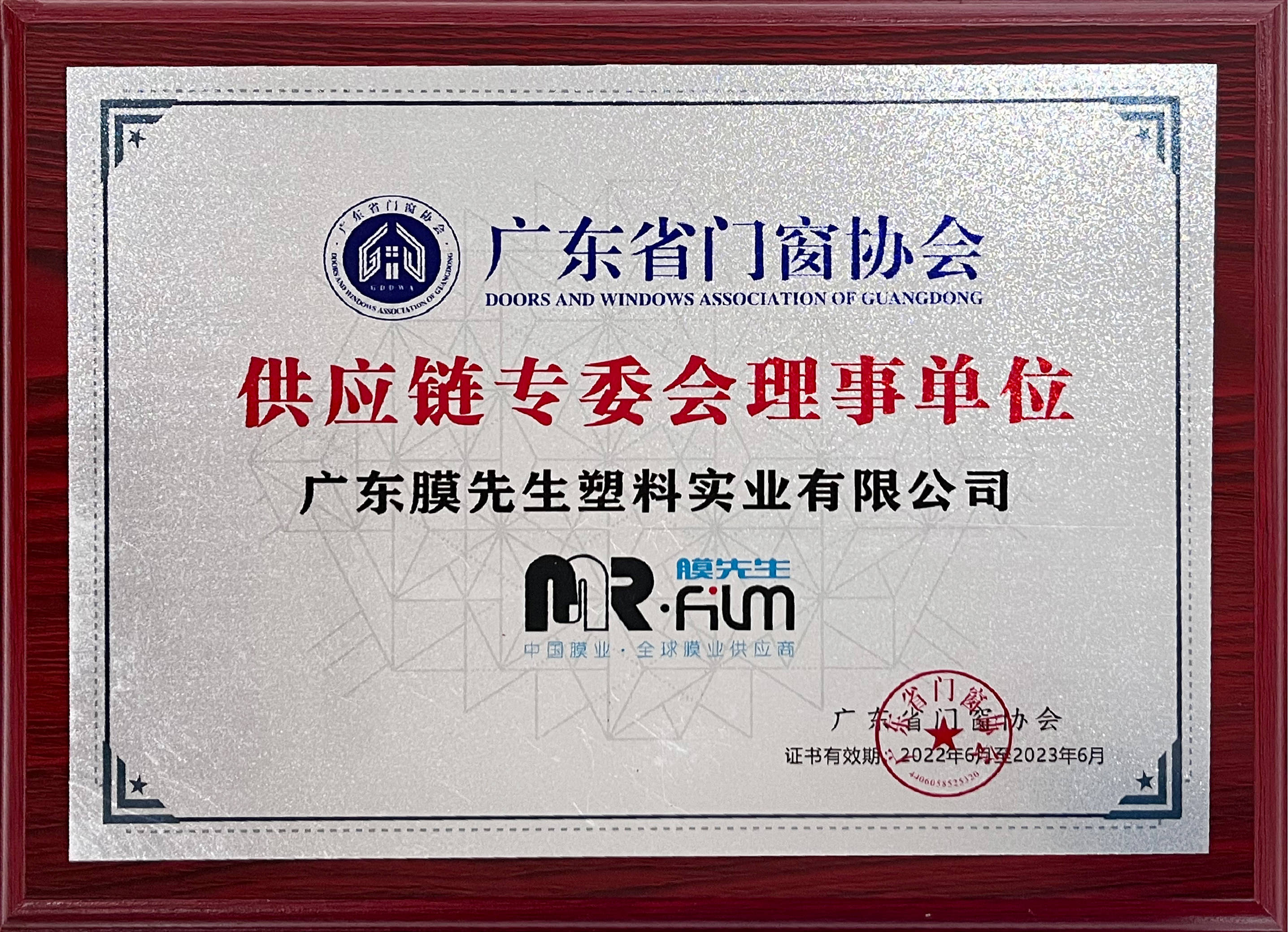 膜先生被評為廣東省門(mén)業(yè)協(xié)會(huì )優(yōu)秀企業(yè),榮膺廣東省門(mén)窗協(xié)會(huì )供應鏈專(zhuān)委會(huì )理事單位。