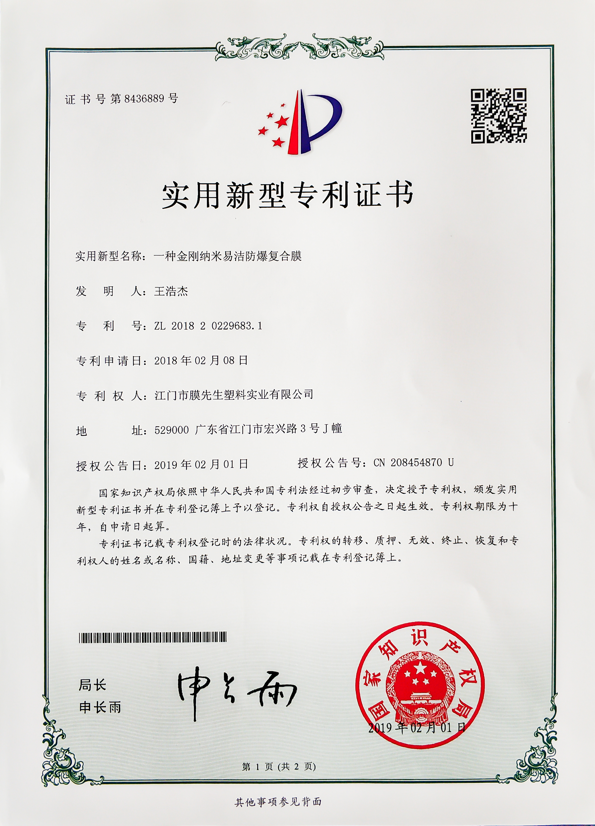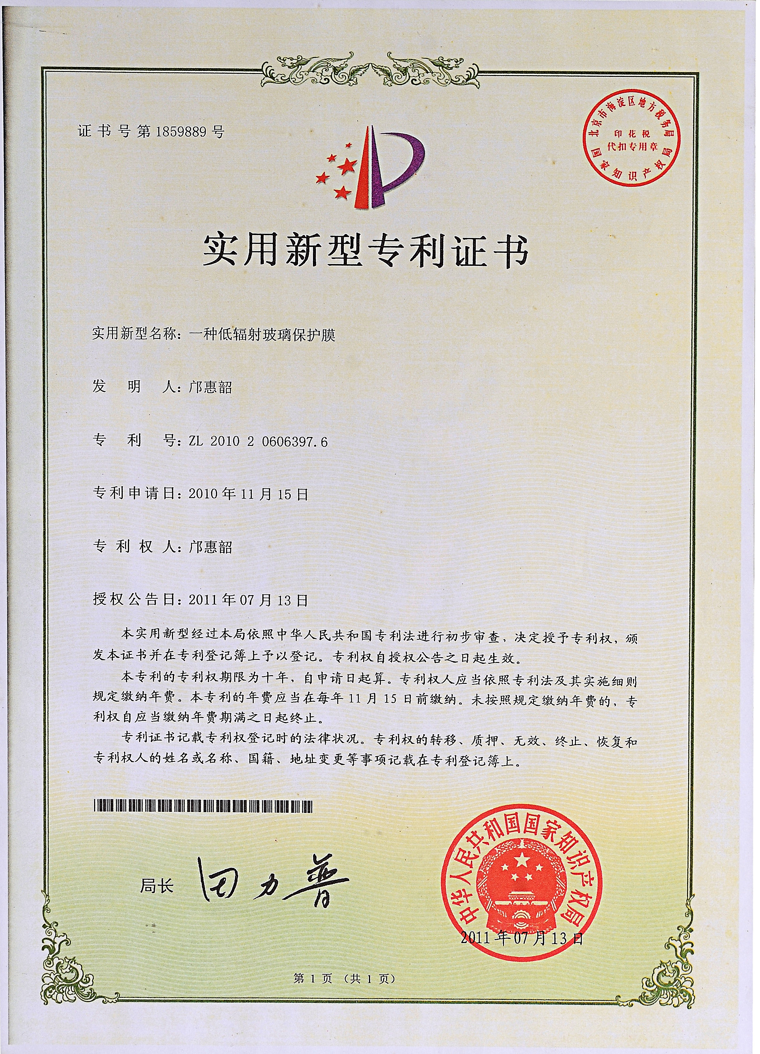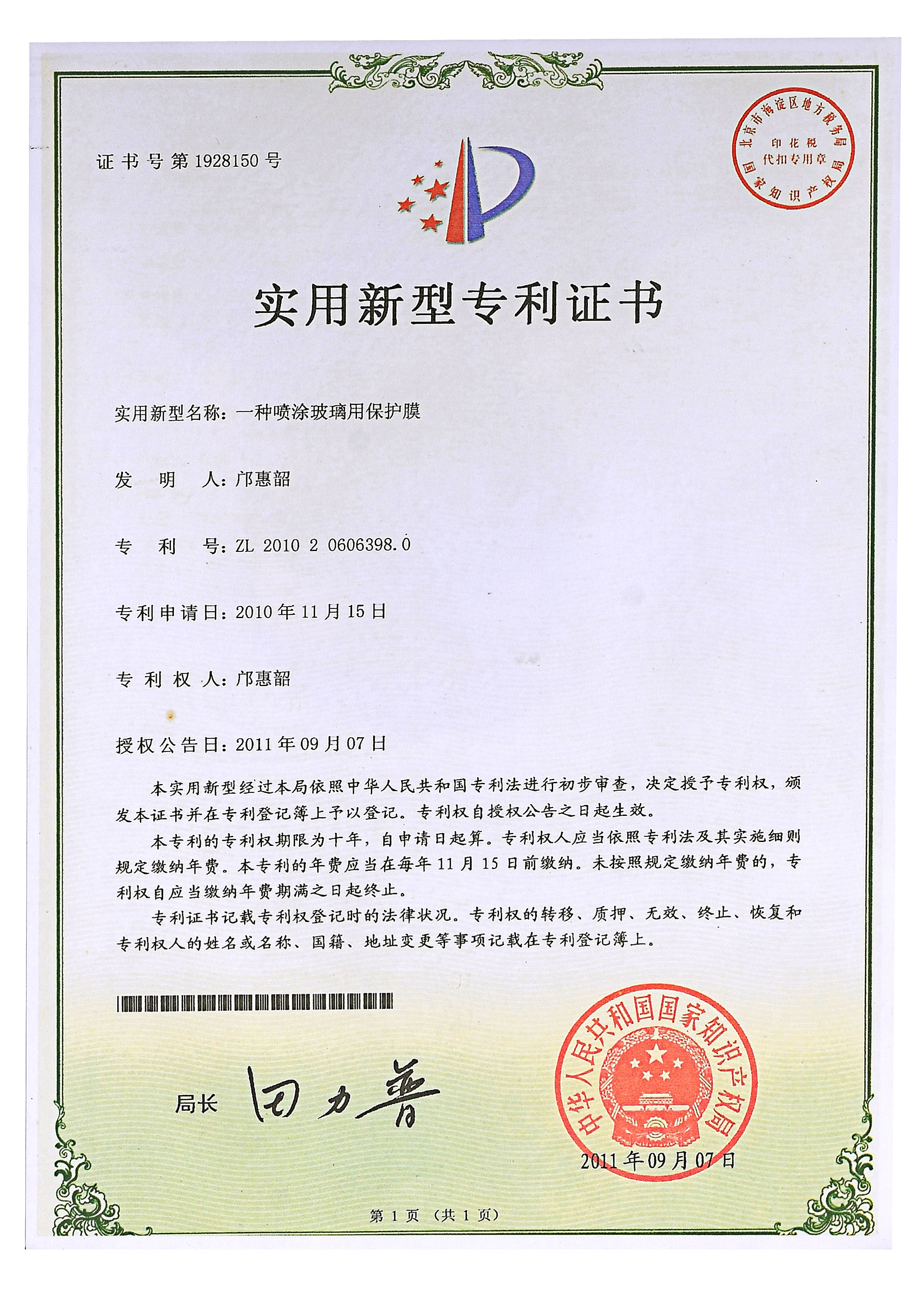 佛山分廠(chǎng)成立,中國第一臺超幅寬涂布機生產(chǎn)線(xiàn)投產(chǎn),并增添1臺幅寬2.8M的吹膜機,專(zhuān)力打造原板Low-E玻璃保護膜成為中國第一膜,并獲得了實(shí)用新型專(zhuān)利證書(shū)。